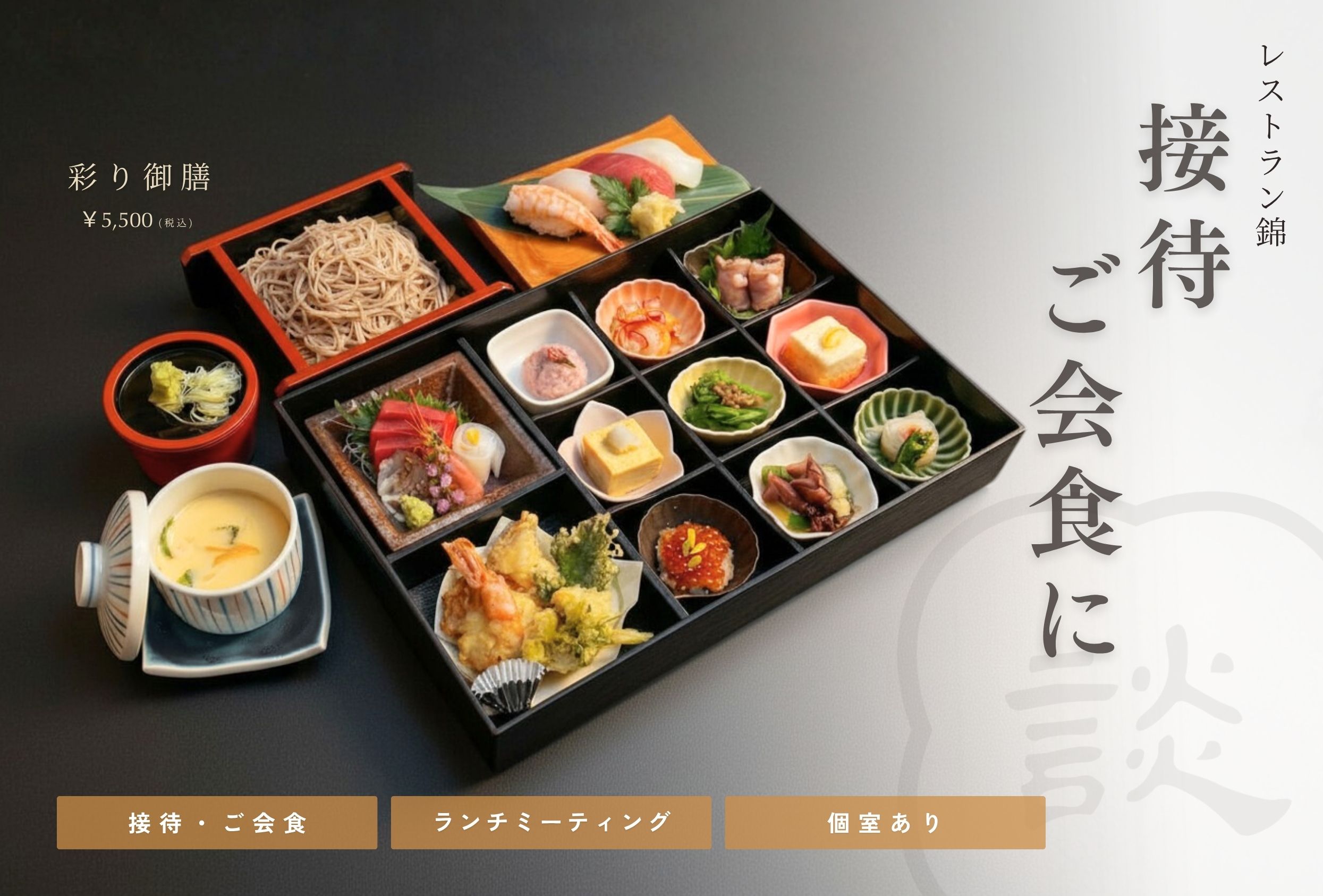 ご家族・ご友人とのお食事はもちろん、商用にも。個室も完備しております。