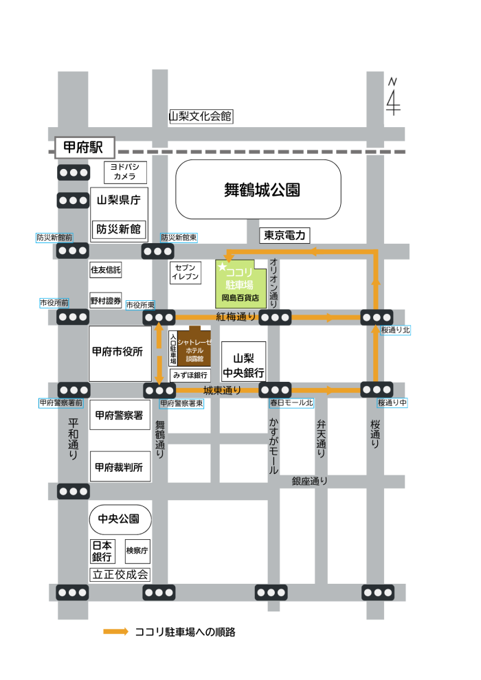※ご宴会でお越しのお客様におかれましては、平日の開庁時間帯における甲府市役所駐車場のご利用はご遠慮ください。